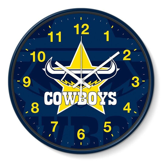 NRL Wall Clock - North Queensland Cowboys - Plastic - 30cm Diameter - Team Logo