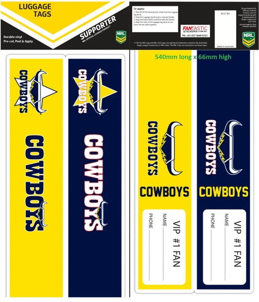 NRL Luggage Bag Tag Sticker - North Queensland Cowboys - Travel Work - Set of 2
