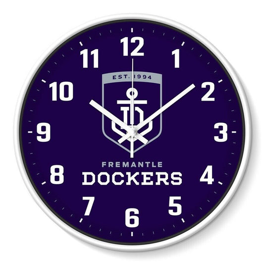 AFL Wall Clock - Fremantle Dockers - Plastic - 30cm Diameter - Team Logo