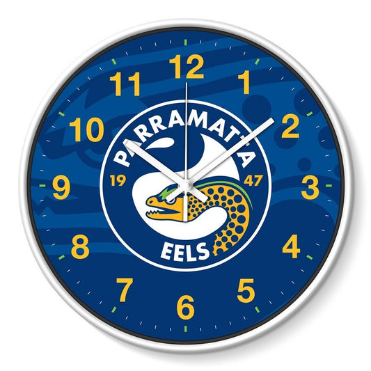 NRL Wall Clock - Parramatta Eels - Plastic - 30cm Diameter - Team Logo