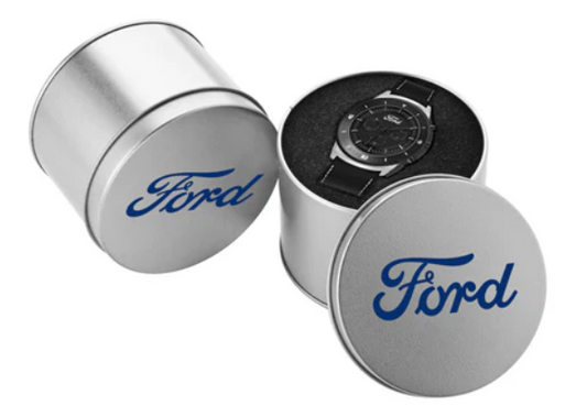FORD Watch - Black on Black - Black Leather Band - Gift Boxed - Adult Watch