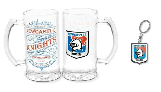 NRL Stein And Enamel Keyring Set - Newcastle Knights - Drink Cup Mug