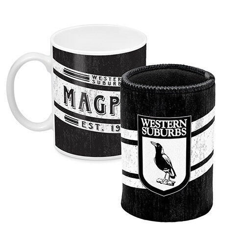 NRL Coffee Cup & Can Cooler Set - Western Suburbs Magpies - Gift Set