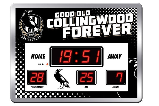AFL LED Scoreboard Clock - Collingwood Magpies - 45x33cm - Time Temp Date