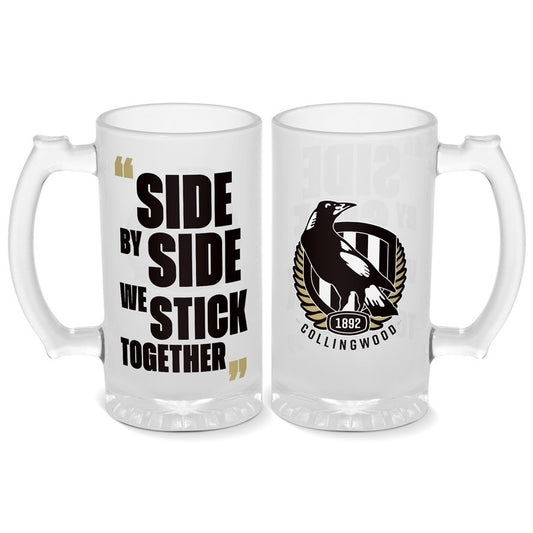 AFL Frosted Stein Glass - Collingwood Magpies - 500ml - Drink Cup Mug