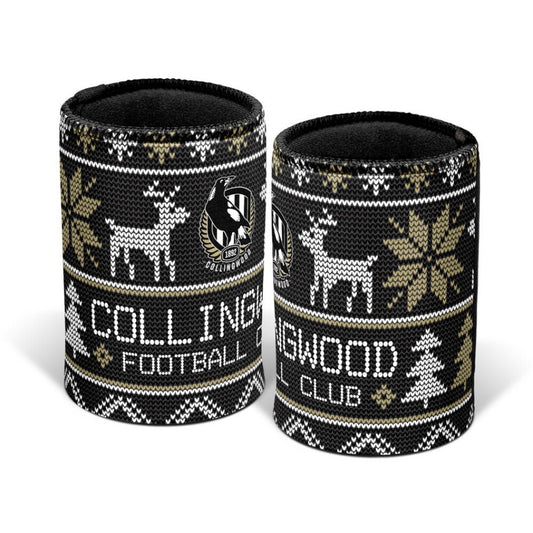 AFL Christmas Stubby Cooler Collingwood Magpies Rubber Base XMAS