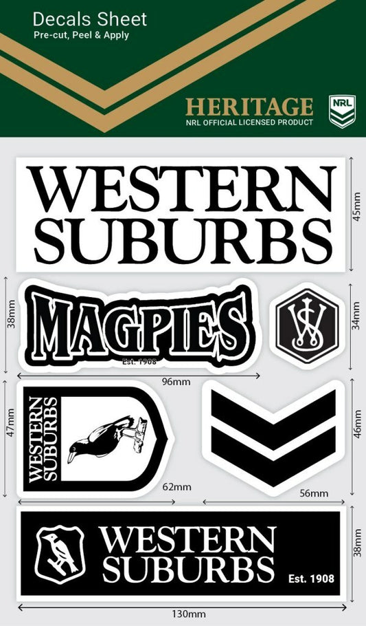 NRL Sticker Decal Sheet - Western Suburbs Magpies - Stickers Wordmark - Heritage