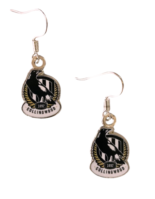 AFL Logo Metal Earrings - Collingwood Magpies - Surgical Steel - Drop Earrings