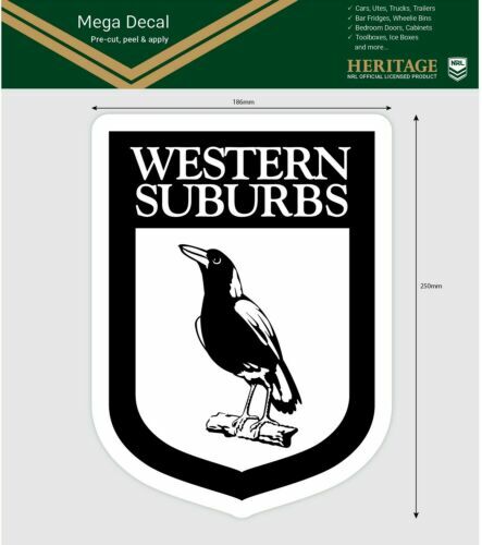 NRL Mega Heritage Decal - Western Suburbs Magpies - Car Sticker 250mm