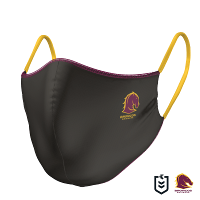NRL Face Mask - Broncos - Reversible - Washable - Adult Large