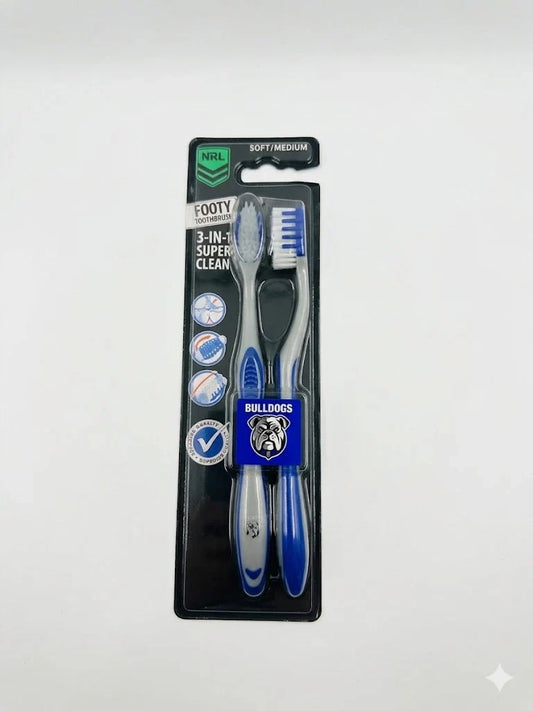 NRL Adult Toothbrush Twin Pack - Canterbury Bulldogs - Set of Two - Soft/Medium