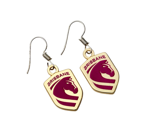 NRL Logo Metal Earrings - Brisbane Broncos - Surgical Steel - Drop Earrings