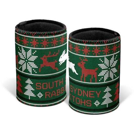 NRL Christmas Stubby Cooler South Sydney Rabbitohs Rubber Base XMAS