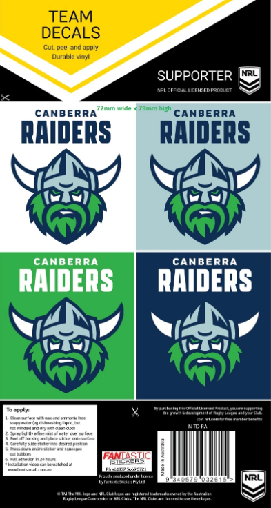 NRL Logo Decal Sheet - Canberra Raiders - Stickers - Sticker