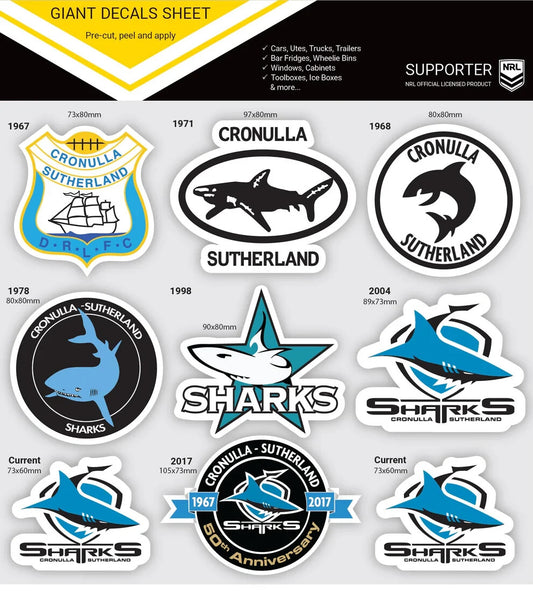 NRL Giant Decal Sheet - Cronulla Sharks - Timeline Of Club Logos - Stickers