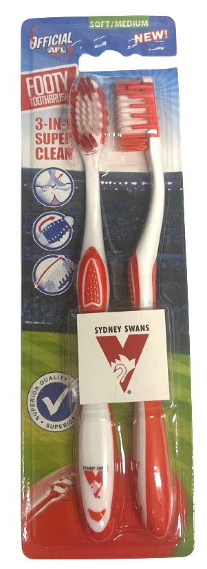 AFL Adult Toothbrush Twin Pack - Sydney Swans - Set of Two - Soft/Medium