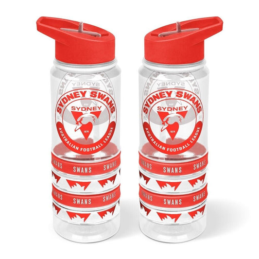 AFL Clear Tritan Drink Bottle 650ml - Sydney Swans - 4 Wrist Bands