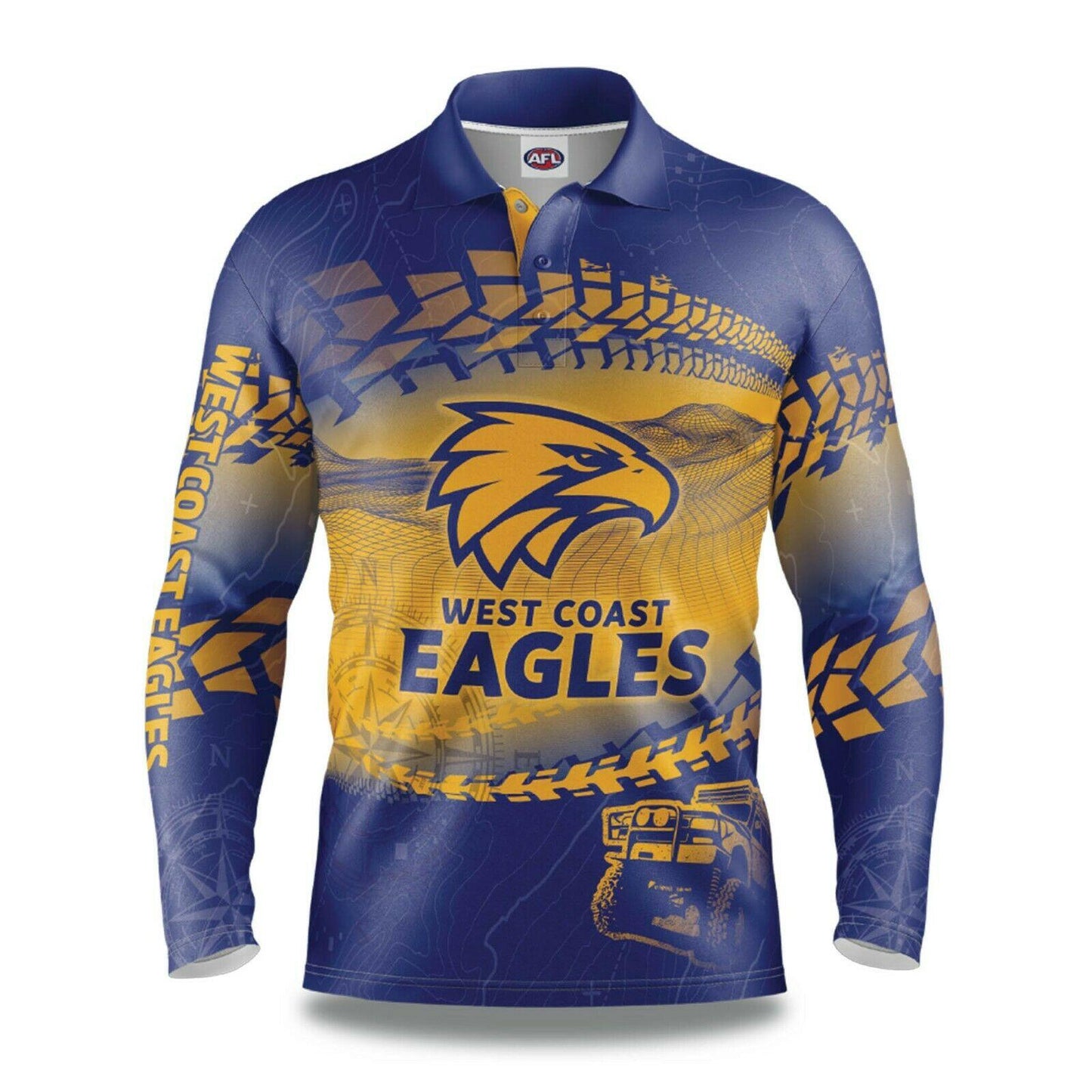AFL 2021 Trax Off Road Camping Polo Tee Shirt - West Coast Eagles - Adult