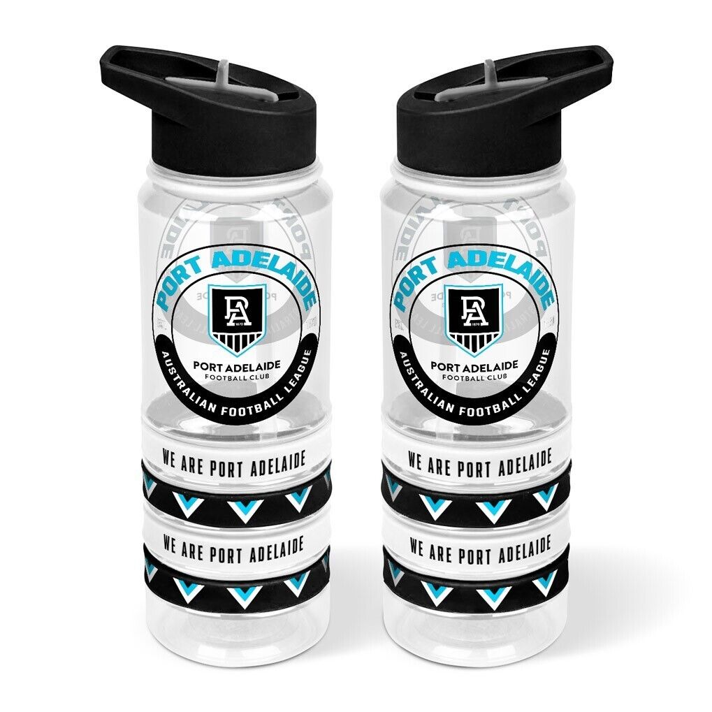 AFL Clear Tritan Drink Bottle 650ml - Port Adelaide Power - 4 Wrist Bands