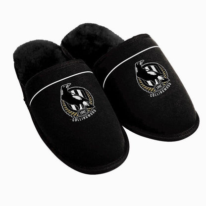 AFL Supporter Slippers - Collingwood Magpies - Mens Size - Fluffy Winter Shoes