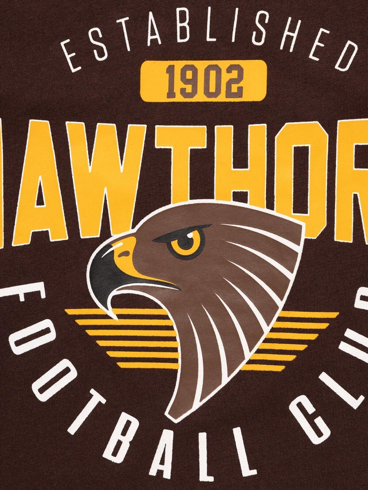 Elevate your fan gear collection and stand out from the crowd with this Hawthorn Hawks supporter t-shirt designed especially for youth and kids.