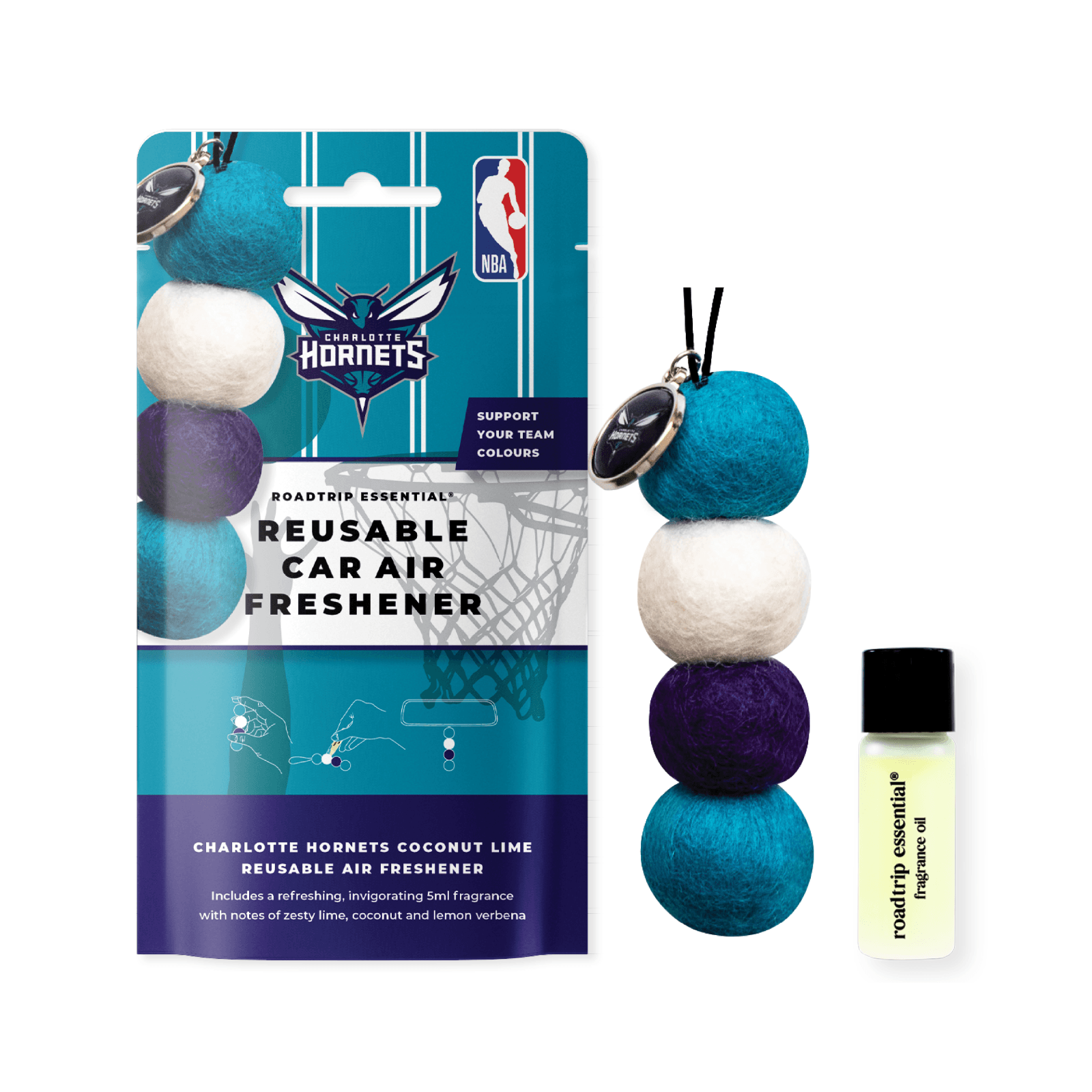 Introducing the NBA Smelly Balls Set featuring the Charlotte Hornets, a re-usable car air freshener that combines fandom and functionality seamlessly.