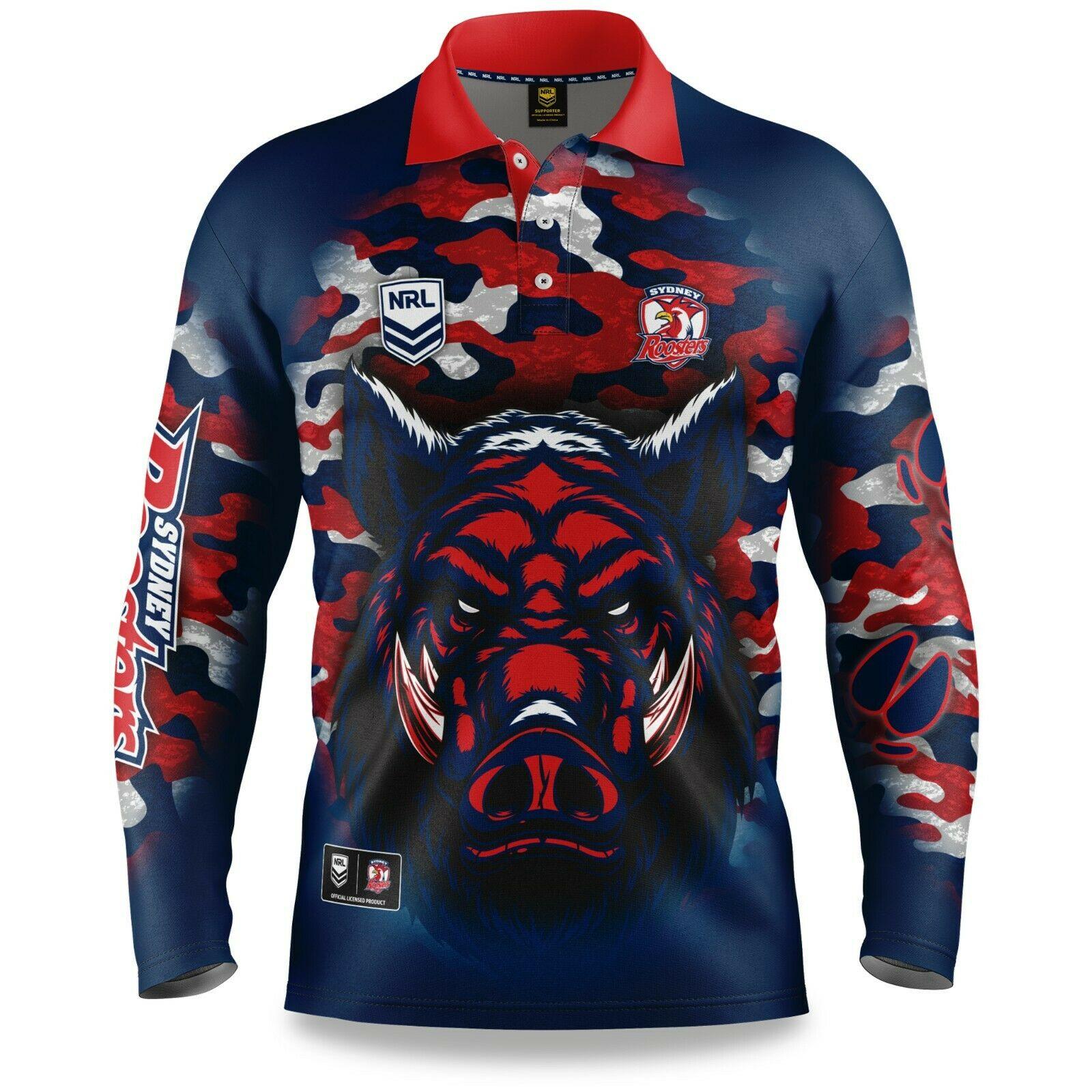 NRL 2021 Long Sleeve Outback Polo Tee Shirt - Sydney Roosters - Adult