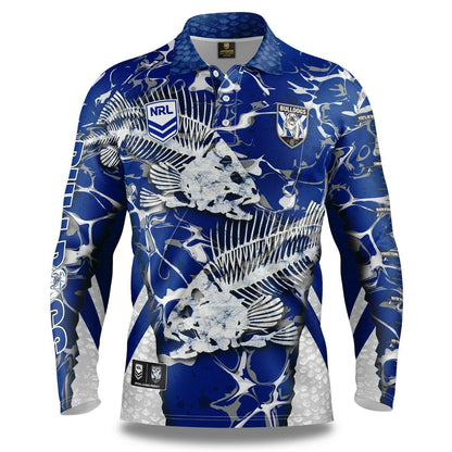 NRL 2021 Long Sleeve Skeletor Fishing Polo Tee Shirt - Canterbury Bulldogs