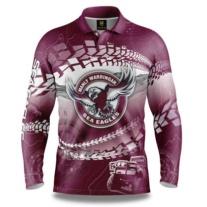 NRL 2021 Trax Off Road Camping Polo Tee Shirt - Manly Sea Eagles - Adult