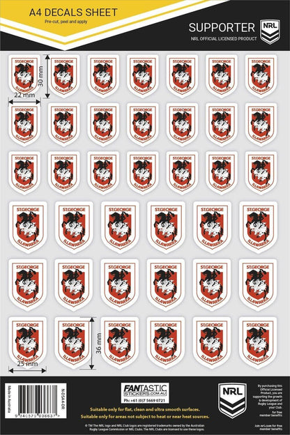 NRL A4 Decal Sheet - St George Illawarra Dragons - Sticker