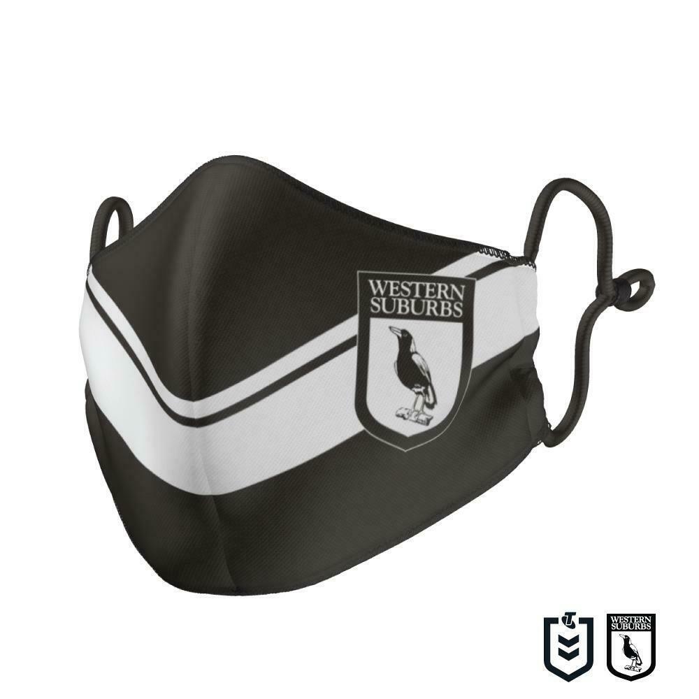 NRL Face Mask - Western Suburbs Magpies - Reversible - Washable - Adult Large