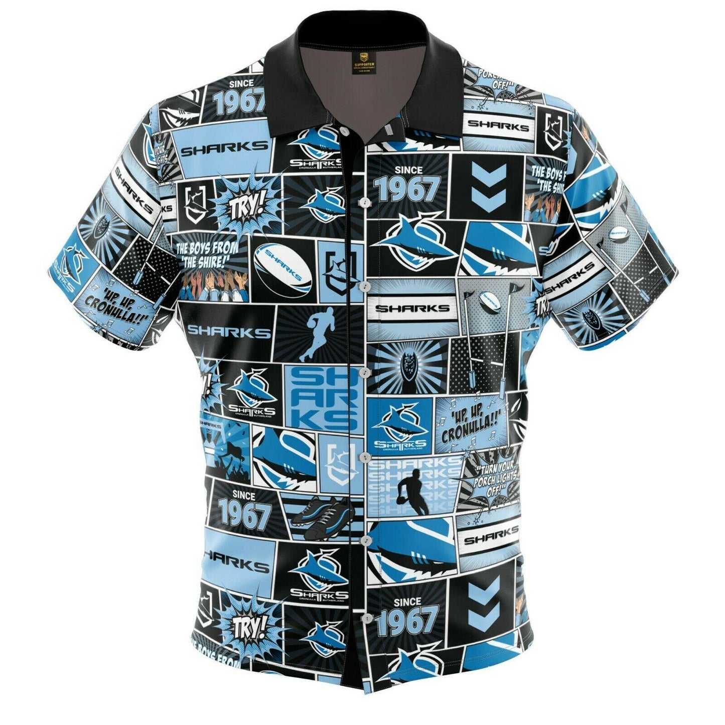 NRL Fanatics Button Up Polo Shirt - Cronulla Sharks - Rugby League