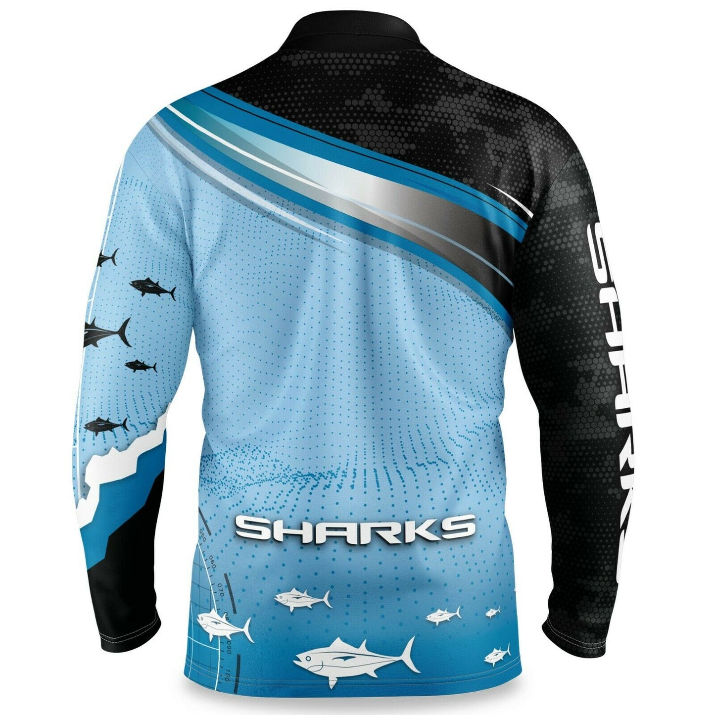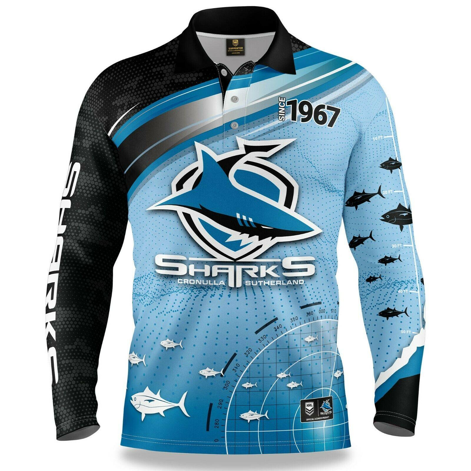 NRL Long Sleeve Fishfinder Fishing Polo Tee Shirt - Cronulla Sharks - YOUTH
