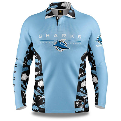 NRL Long Sleeve Reef Runner Fishing Polo Shirt - Cronulla Sharks - YOUTH