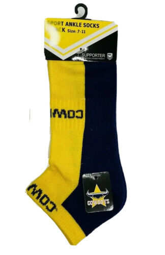 Step up your game with the NRL Mens Ankle Socks featuring the iconic North Queensland Cowboys design. These official licensed socks are not just accessories; they are a statement of your unwavering support for your favorite NRL team. Perfect for both everyday wear and game day, this set of two socks brings comfort and style together!