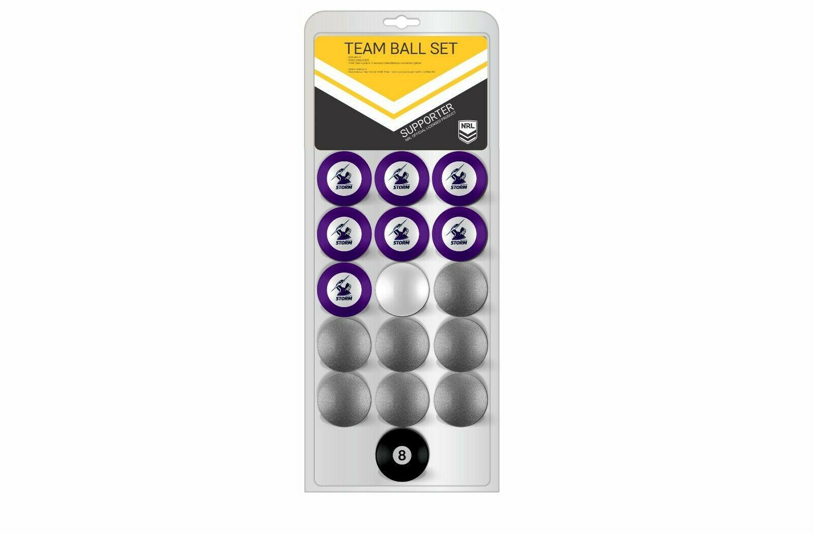 NRL Pool Snooker Billiards 16 Ball Full Set - Team Vs Colour - Melbourne Storm