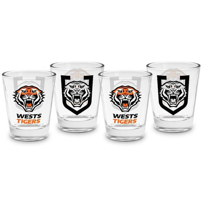 NRL Shot Glass Set of 4 - West Tigers - 50ml