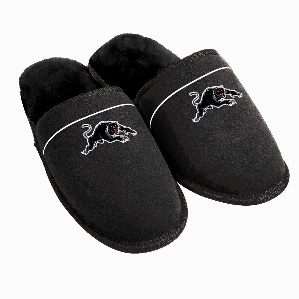 NRL Supporter Slippers - Penrith Panthers - Mens Size - Fluffy Winter Shoes